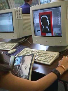 Art student Tara Rose compares her original idea source with her computer generated graphic in order to make any adjustments necessary. Through her observation and self- critiquing, Miss Rose demonstrates an aspect of critical analysis. |